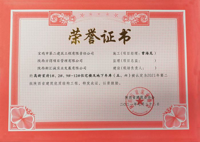 2021年度陜西省建筑優(yōu)質(zhì)結(jié)構(gòu)工程(高新首府1#、2#、9#-12#住宅樓及地下車庫)