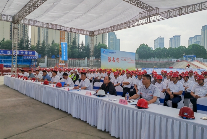 集團公司黨委副書記、總經(jīng)理楊江平,副總經(jīng)理、總會計師嚴海軍,副總經(jīng)理申小龍出席儀式。集團公司總部相關(guān)部門,寶雞片區(qū)各項目部負責人、專職安全管理人員及現(xiàn)場施工人員共計150余人參加了本次活動,儀式由副總工程師、工程管理部經(jīng)理郭為群主持。